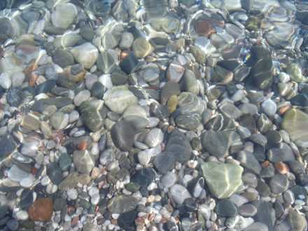 Pláž je kamenitá