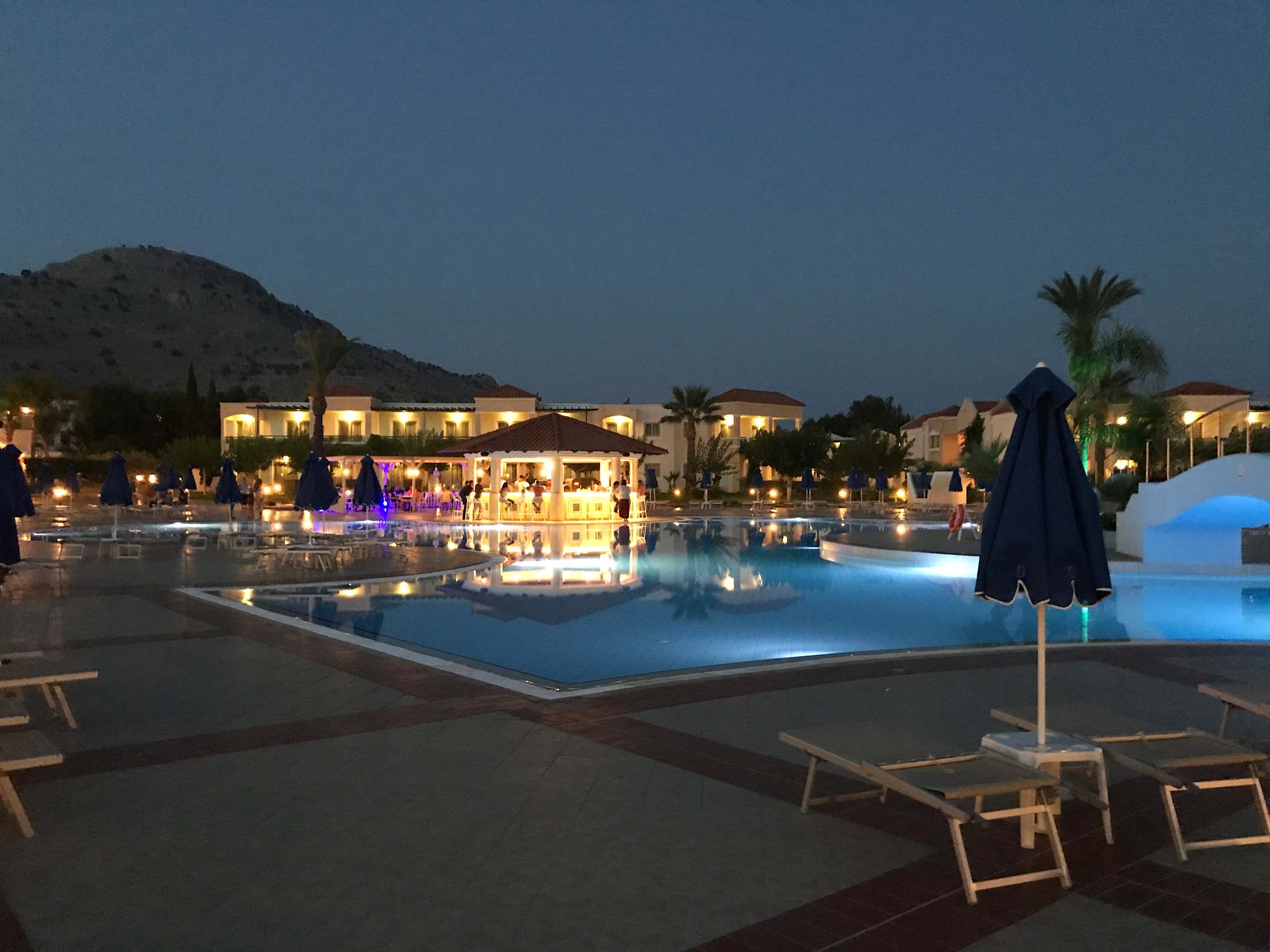 Poolanlage mit Bar am Abend
