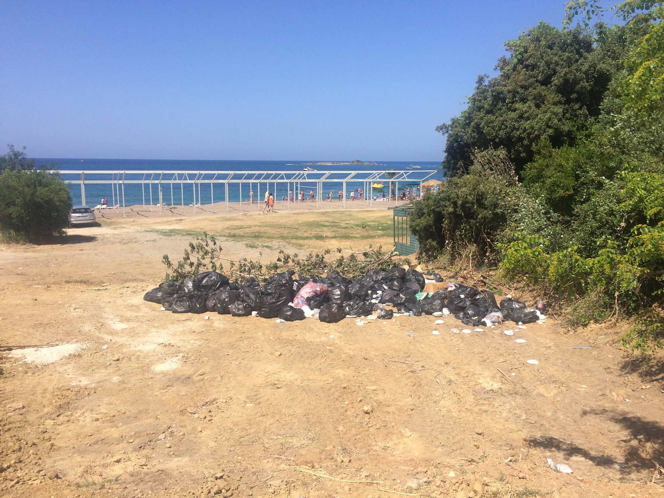 Neben dem Hotel Strand Mülltüten