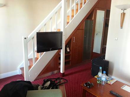 Zimmer mit Treppe zum Bett