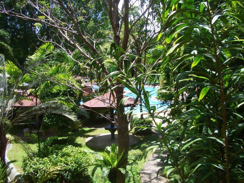 Blick vom Balkon zur Poolanlage