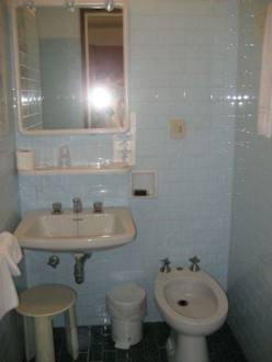 das Badezimmer mit Waschtisch. Auf der Plastikablage unter dem Spiegel und im Waschbecken haben sich abgezwickte Nägel vom Bewohner vor uns befunden. Ich glaube das ist nicht zu toppen..