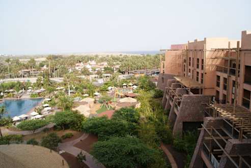 Blick vom Zimmer 4. StockBlick vom Zimmer 4. Stock Richtung Dünen. Unten sieht man den Miniclub und das untere Ende der Poolanlage.