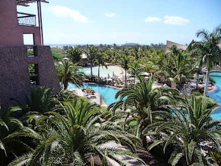 Blick von unserem Zimmer zur Pool-/Gartenanlage