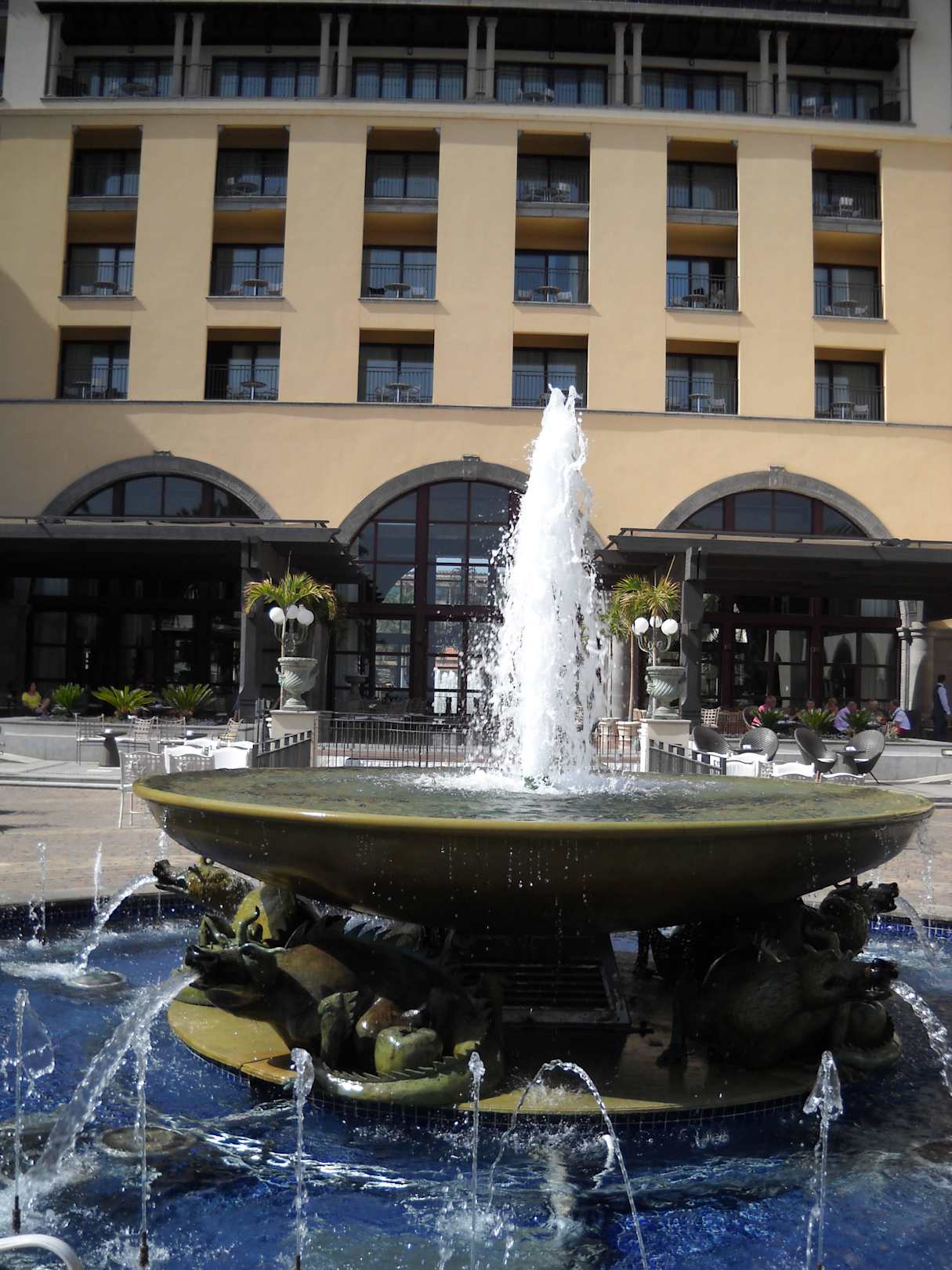 Blick aus Richtung grosser Pool zum Hotel