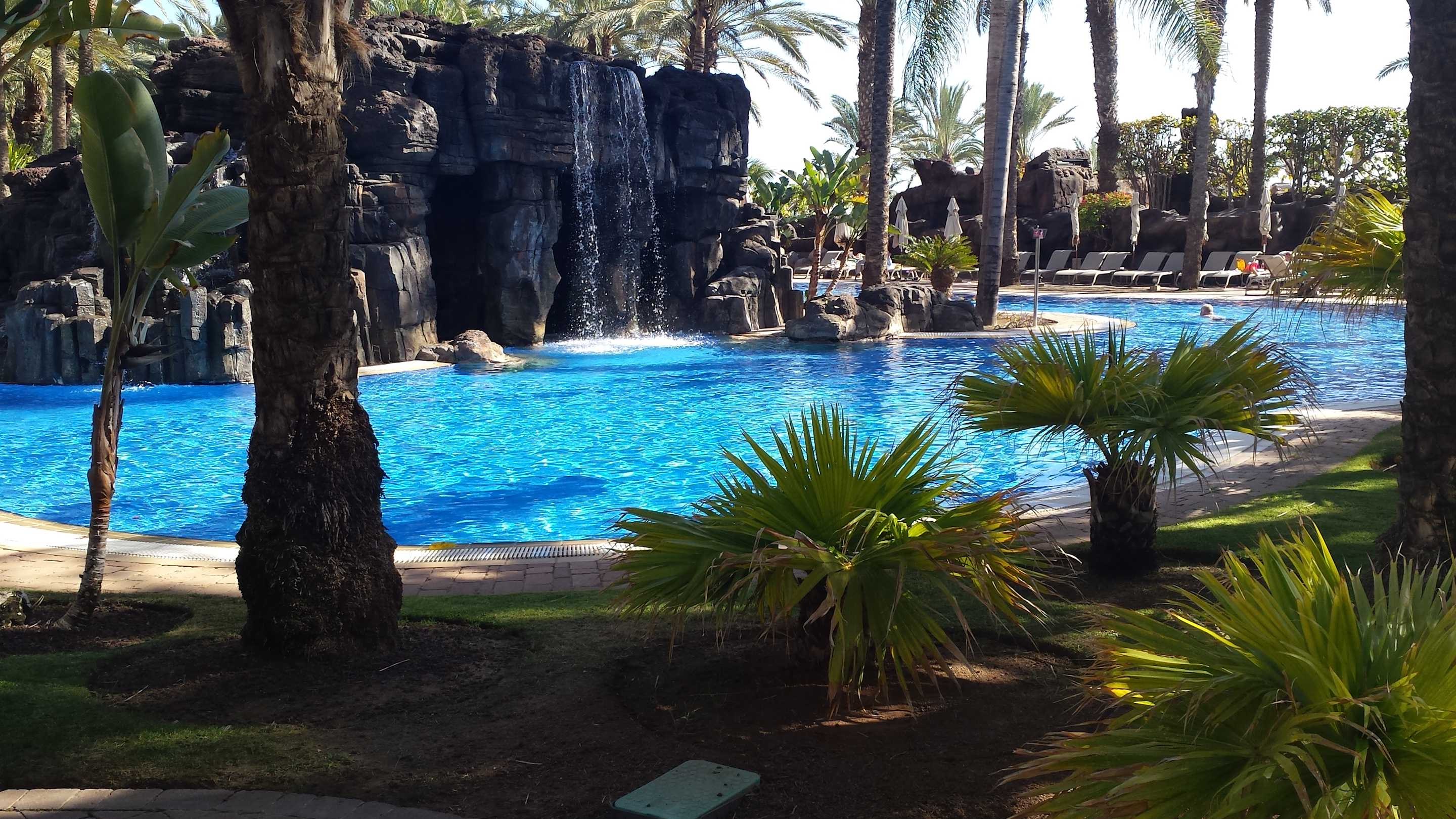 Pool mit künstlichem Wasserfall im Hotelpark