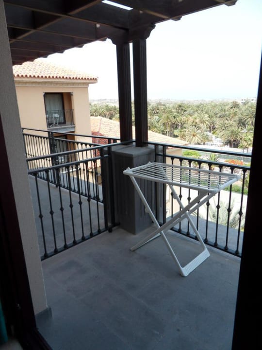 Balkon mit Blick nach links. Normal sind ausziehnare Wäscheaufhänger an den Wänden, allerdings bei den mittleren Zimmern nicht, da wir viel Wäsche hatten haben wir dann einen Wäscheständer bekommen :-)