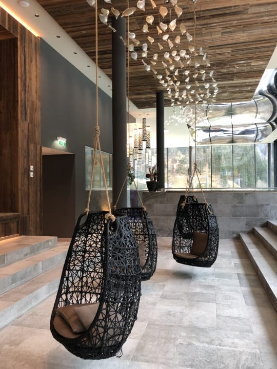 Gemütliche Schwebesessel beim Indoor Pool