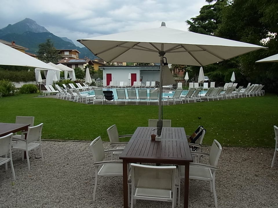 Essbereich draussen, Blick zum Pool