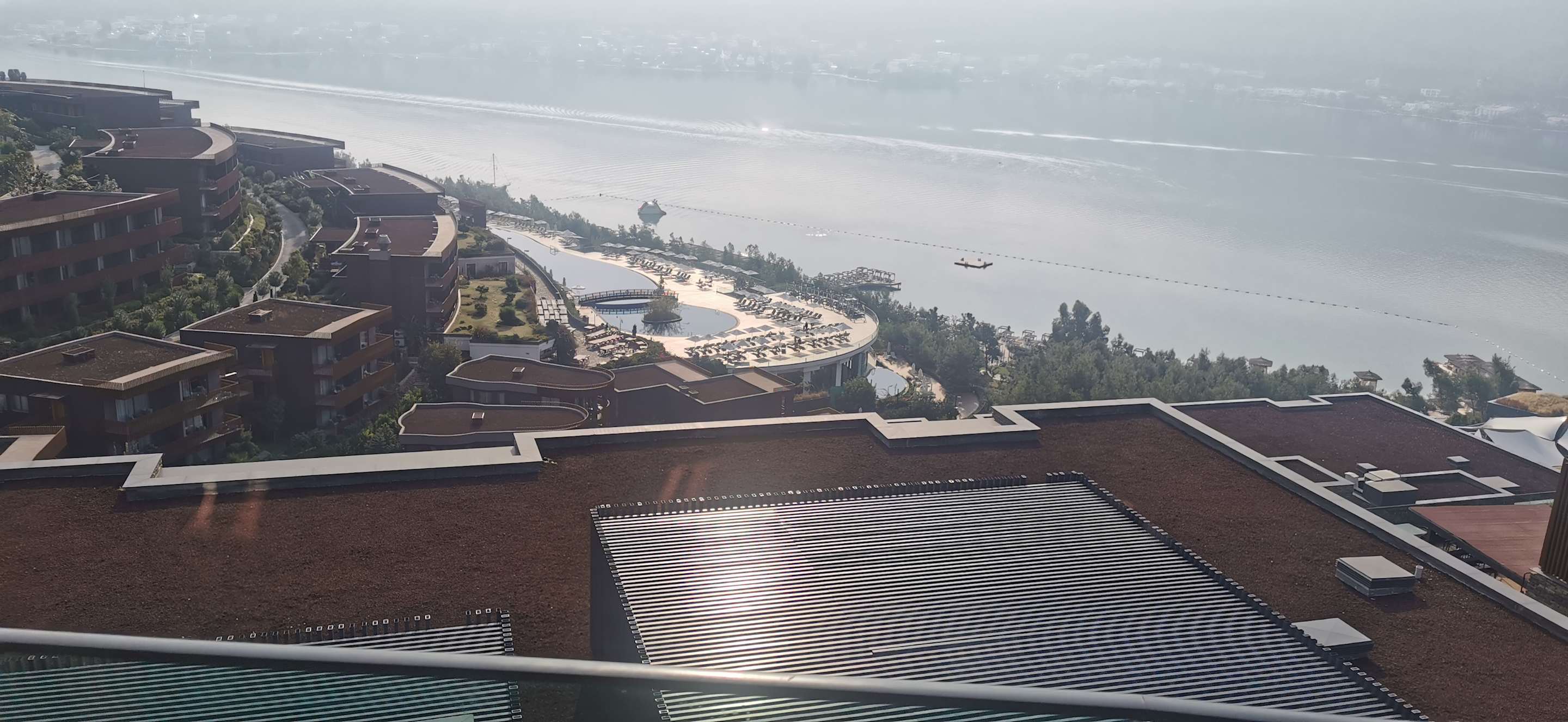 Blick von der Rezeptions-Terrasse zum Meer und zum Nachbarhotel