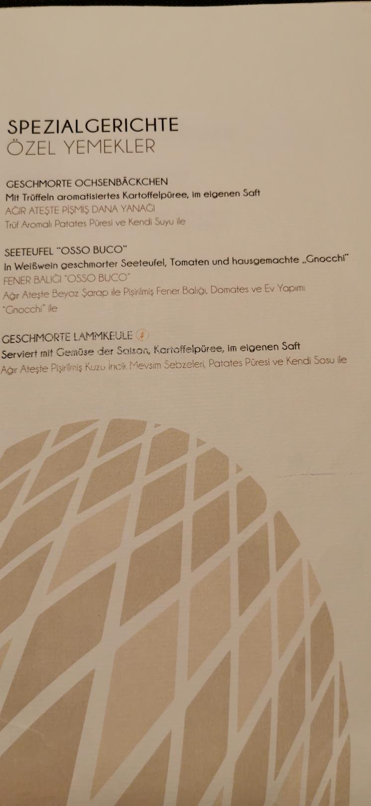 Die Speisekarte vom Koza Restaurant