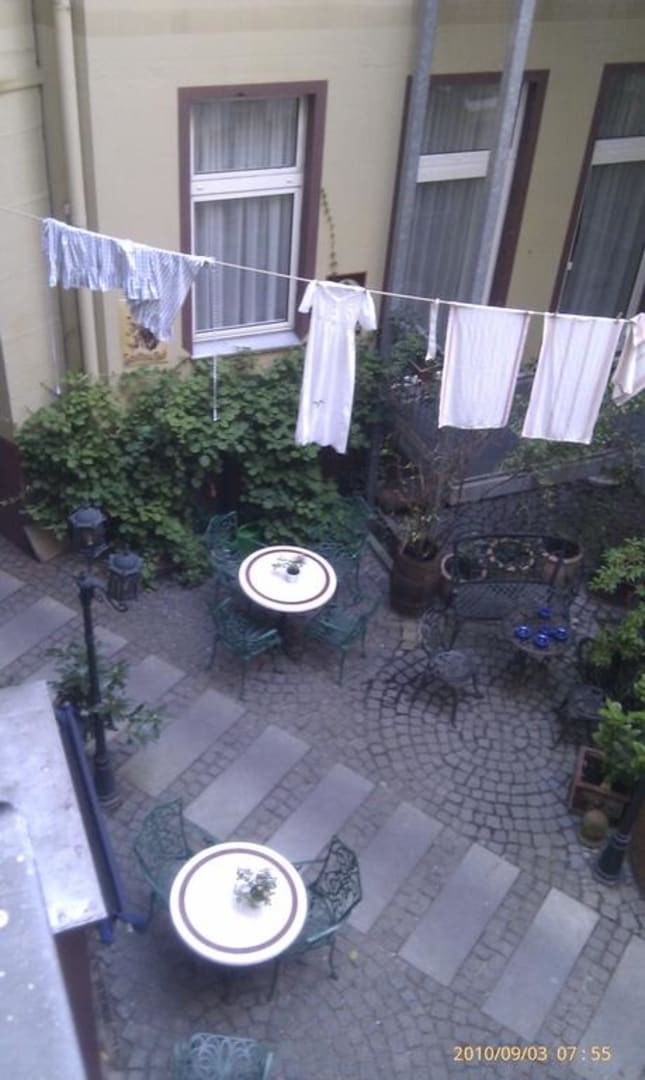 Innenhof mit Springbrunnen und (Deko-) Unterwäsche