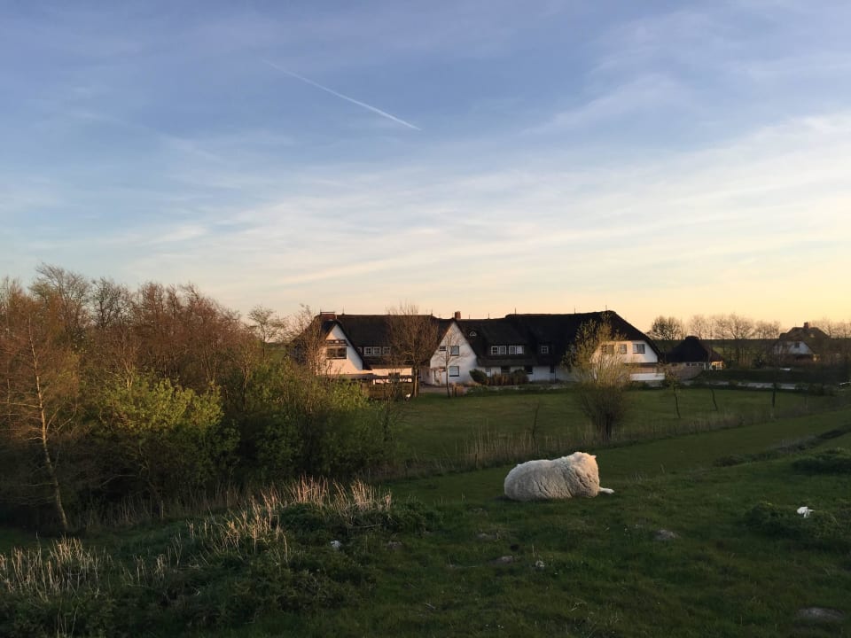 Aussicht vom Deich zum Hotel