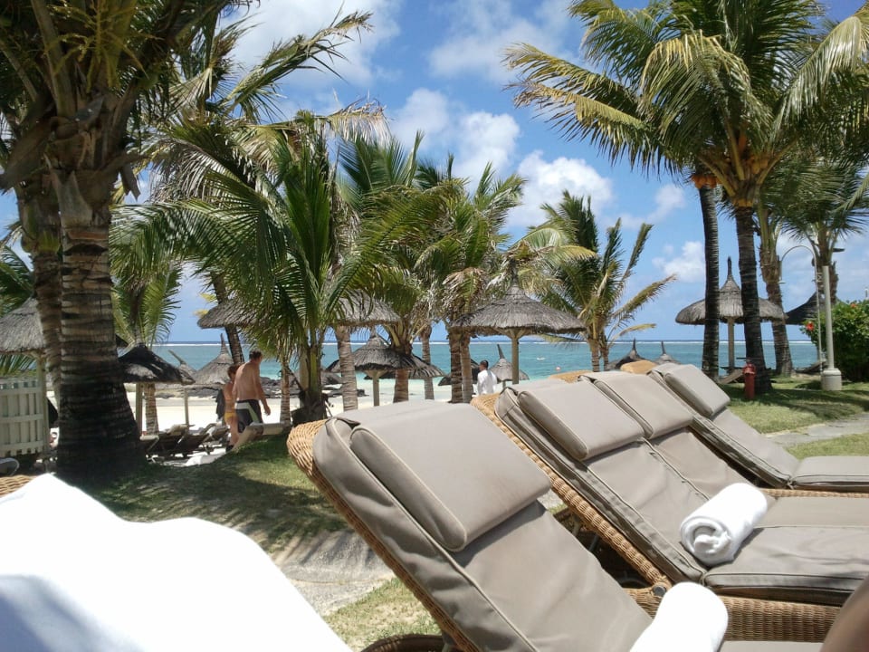 Liegen am Pool mit Blick auf Meer und Strand