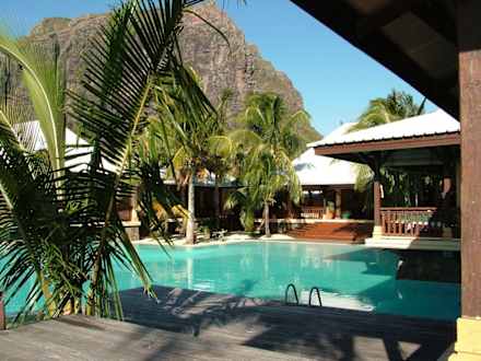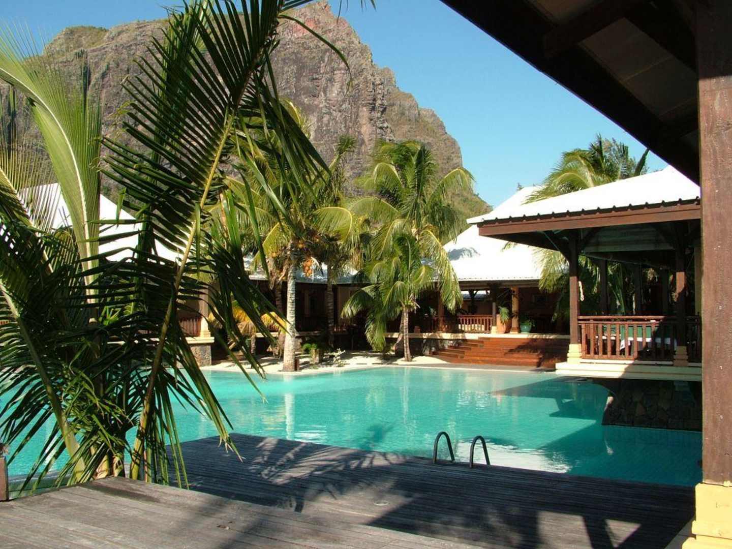 Traumhotel vor TraumkulisseZentraler Bereich des Hotels Les Pavillons vor dem Hintergrund des Felsenmassivs Morne Brabant