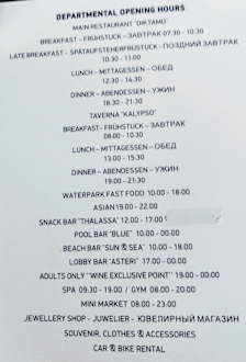 GastroÜbersicht de Restaurants. Tipp: Frühstück nicht im Hauptrestaurant einnehmen; Beach Bar hat Wok