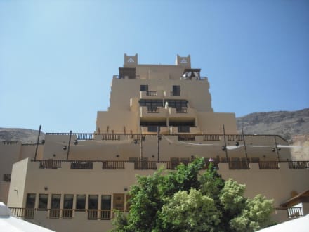 Blick vom Pool auf das Hotel