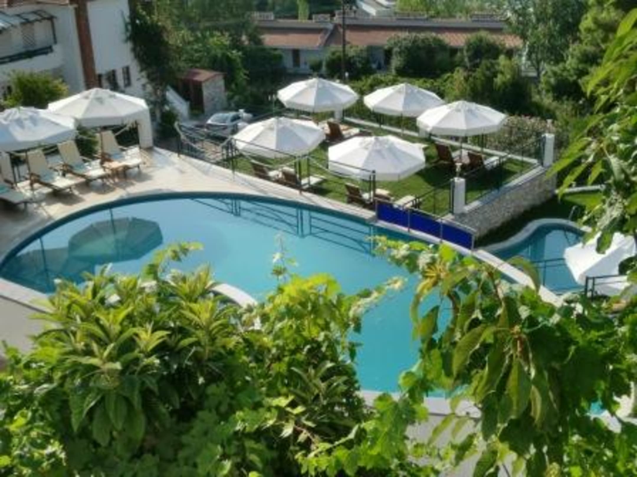 Blick auf den Pool vom Zimmer