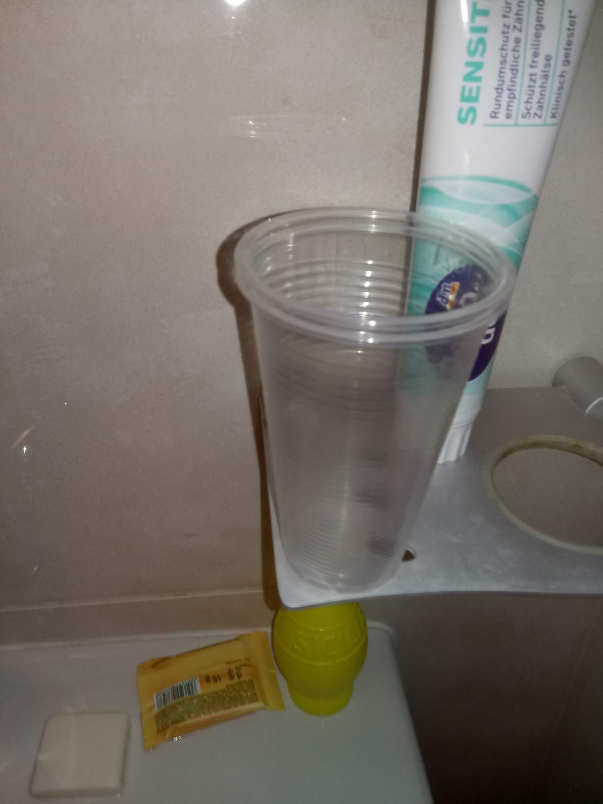 Plastik Becher zum Zähneputzen.