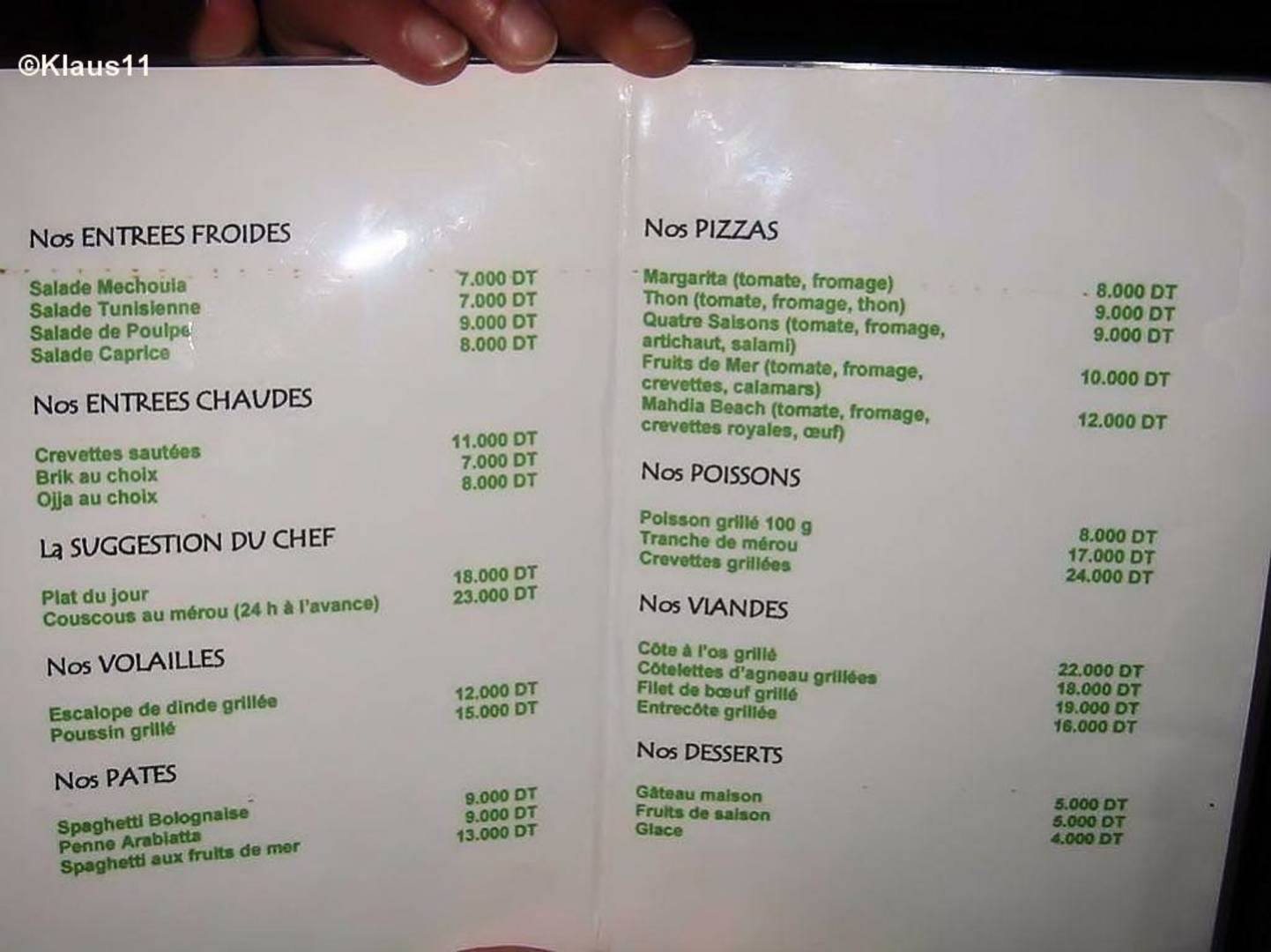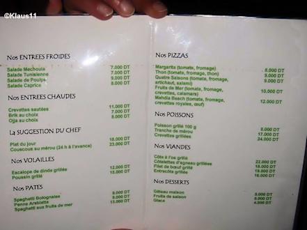 Menukarte à la carte Restaurant