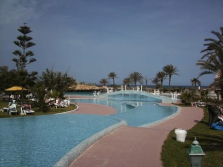 Schöne Poolanlage mit Blick zum Meer