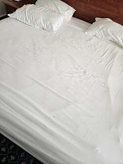 Zimmerdie Zimmer würden nicht richtig sauber gemacht Handtücher schmutzig im Badzimmer gebliben