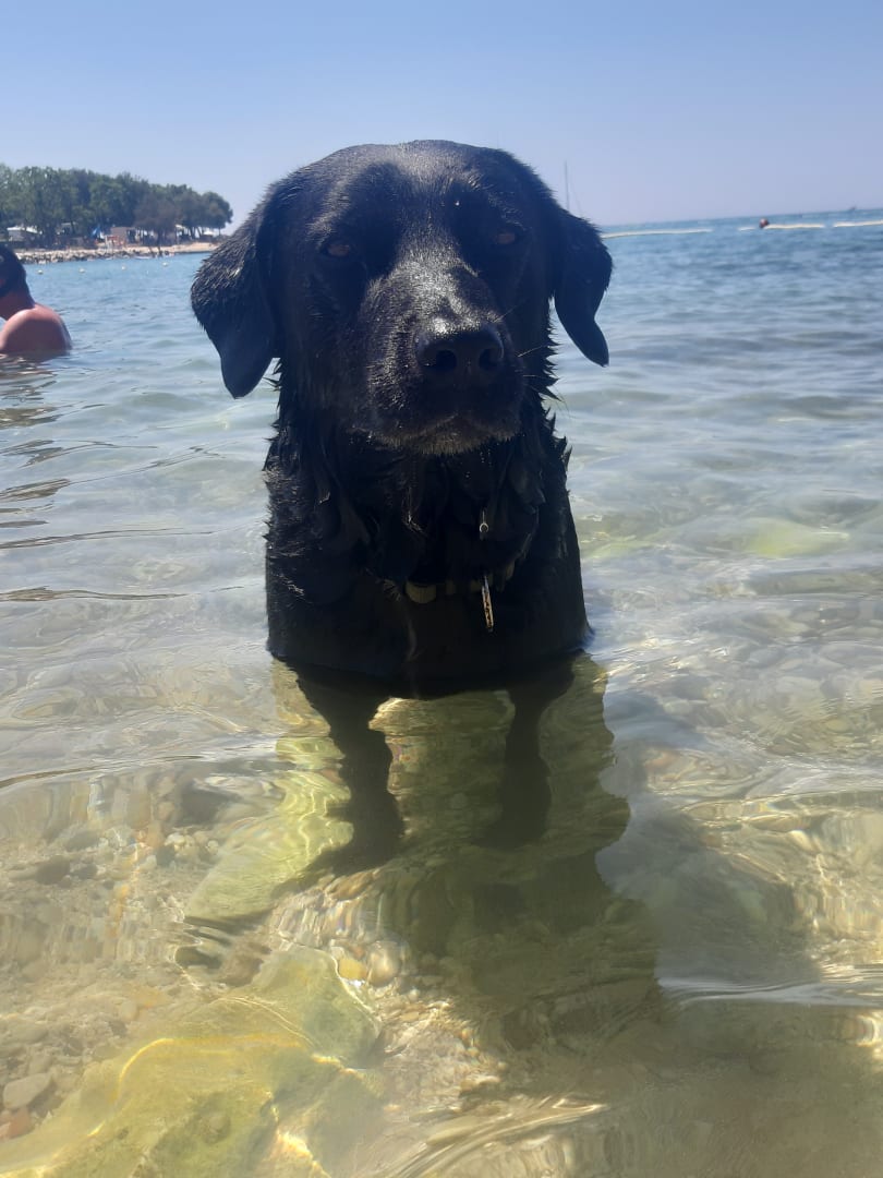 Hundestrand mit Kies und größeren Steinen an der Seite.Hundedusche vorhanden!