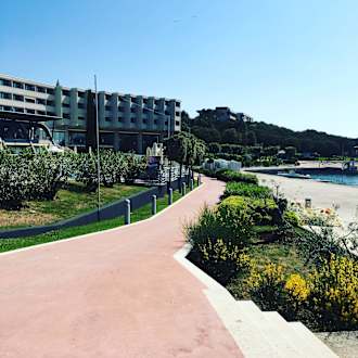 Gartenanlage und Hotel im Hintergrund