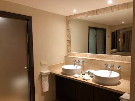 Alles mit Marmor gefliest, sehr luxeriös.