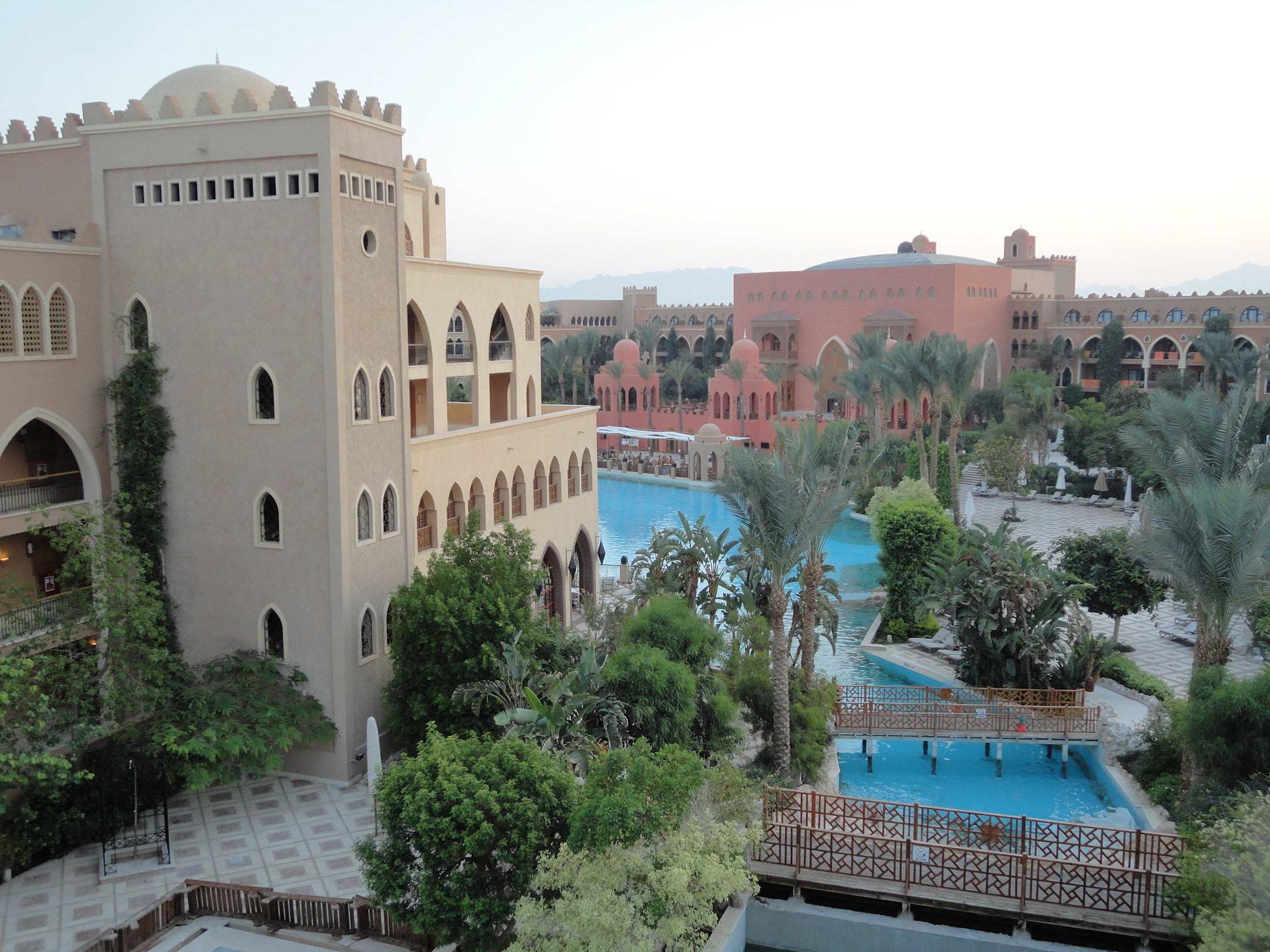 Aussicht aus dem Zimmer auf Lobby rosa im Hinterg.