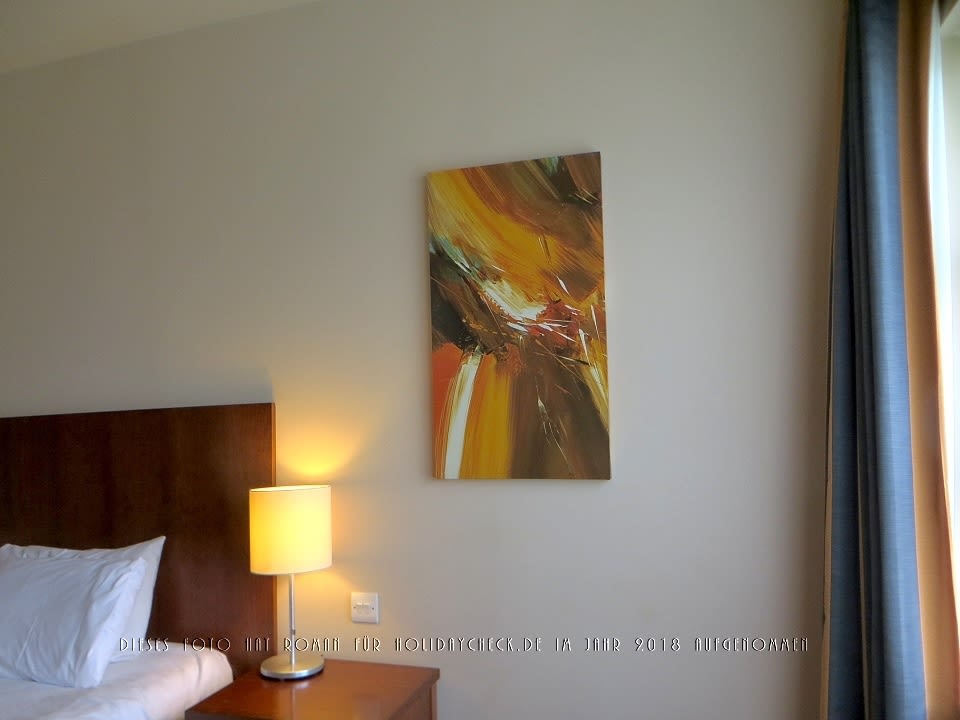 Das zweite Einzelbett am Fenster, mit Wanddeko.