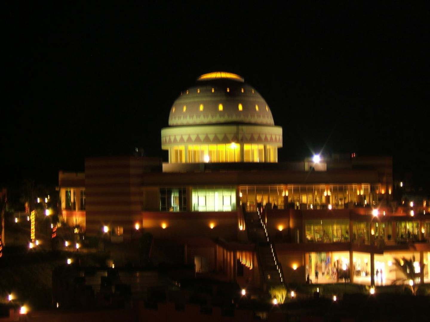 Nachts wird das Hotel schön beleuchtet.