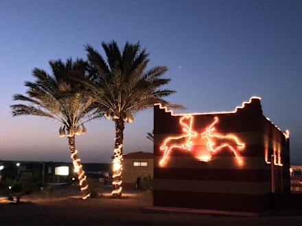 Der Zugang zum Strand und die Toiletten mit Rentierbeleuchtung (im Mai ;))