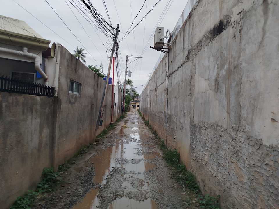 Einfahrt zum Hotel bei Regen