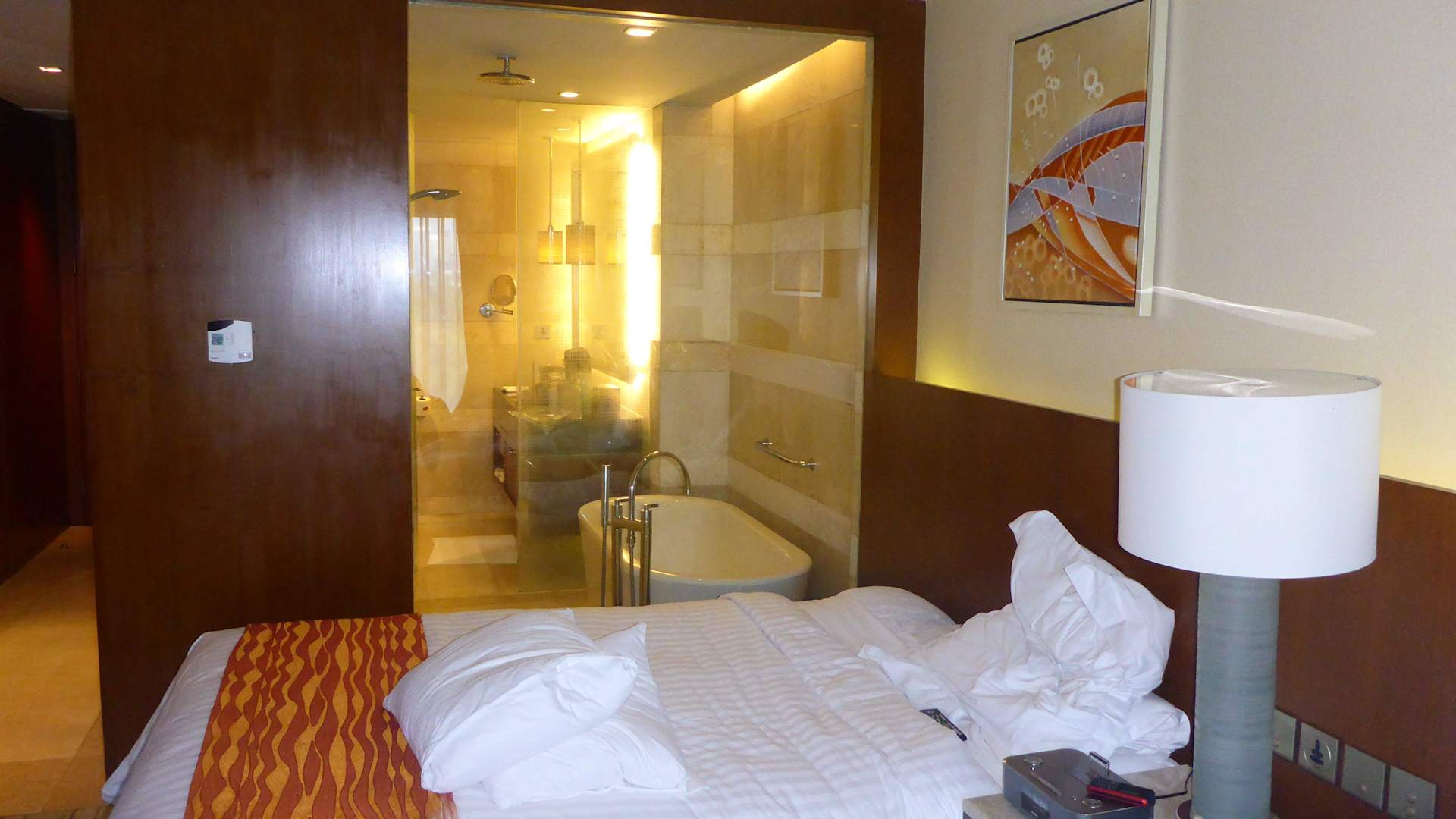 Schon etwas ungewöhnlich-Blick vom Bett in Dusche