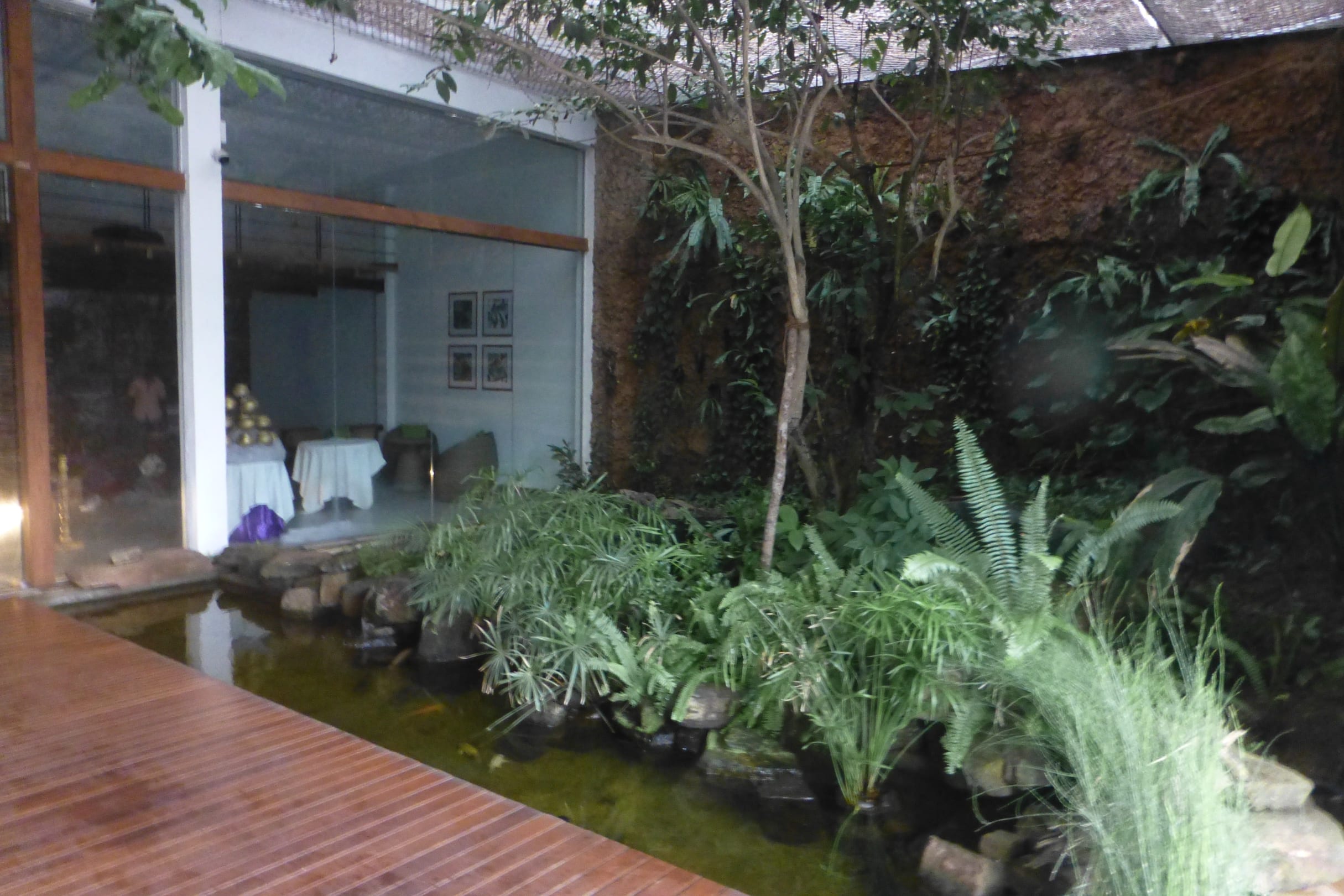 Kleiner tropischer Garten im Eingangsbereich.