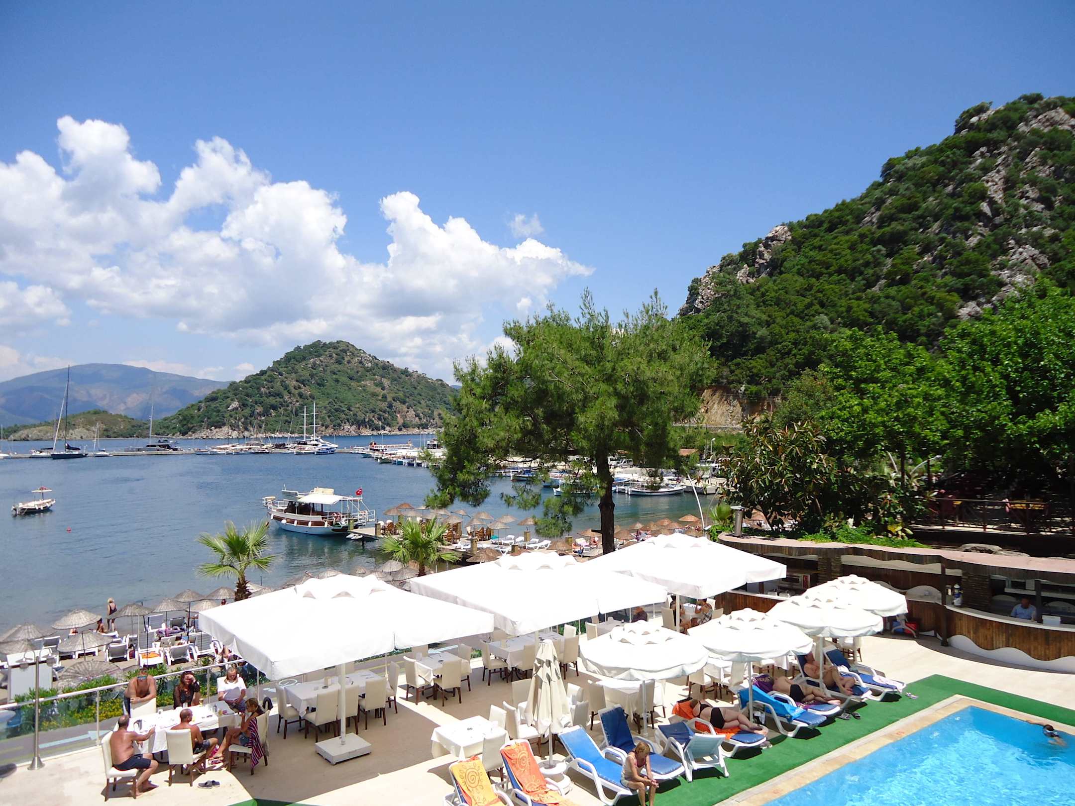 Ausblick aus dem Zimmer zum Meer + Pool