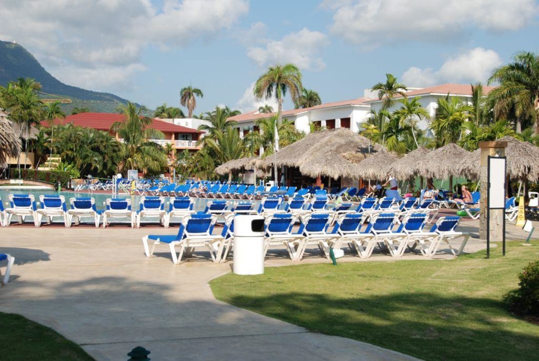 Poollandschaft mit neuen Gebäuden rechts