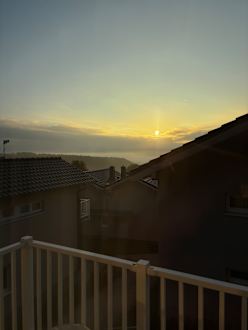 Blick vom Chalet aus in den Sonnenaufgang