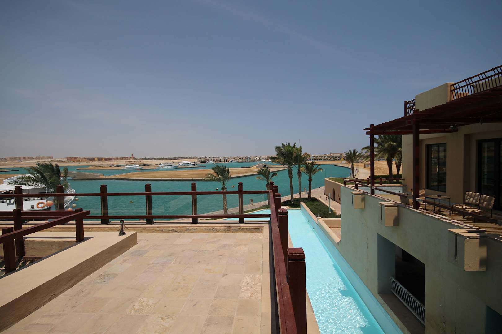 Oberer Poolbereich mit Blick auf den Hafen