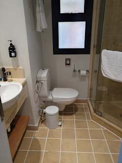 ZimmerIm Bad ist wohl das WC für Leute wo 150cm geeignet. Mit 190cm müsste man WC um 90 Grad eigentlich drehen. So fast unmöglich zu benutzen. Wasser läuft bei Duschen zwischen Dichtungen raus. Im Bad wurde schon sehr viel ausgebessert, aber dennoch übel