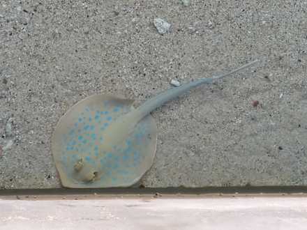 ein Blaupunktrochen im Hafenbereich