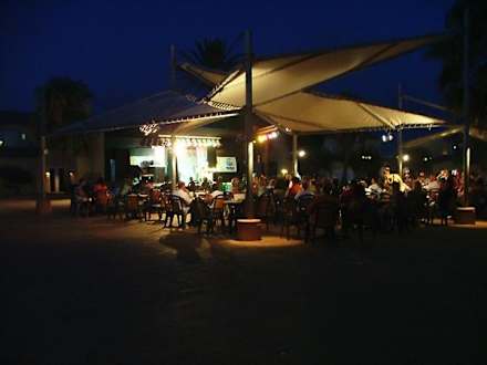 Die Animationsbühne mit abendlicher Beleuchtung.