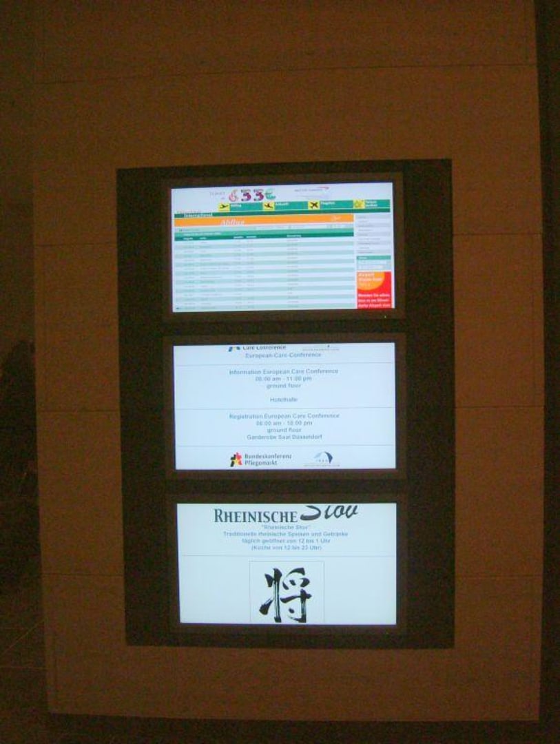 Hotel Maritim DüsseldorfIn der Lobby zwei solche Wände mit Abflug/Ankunft und Übersicht der belegten Tagungsräume