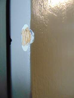 Auch die Tür zum Bad ist ziemlich vermackt.