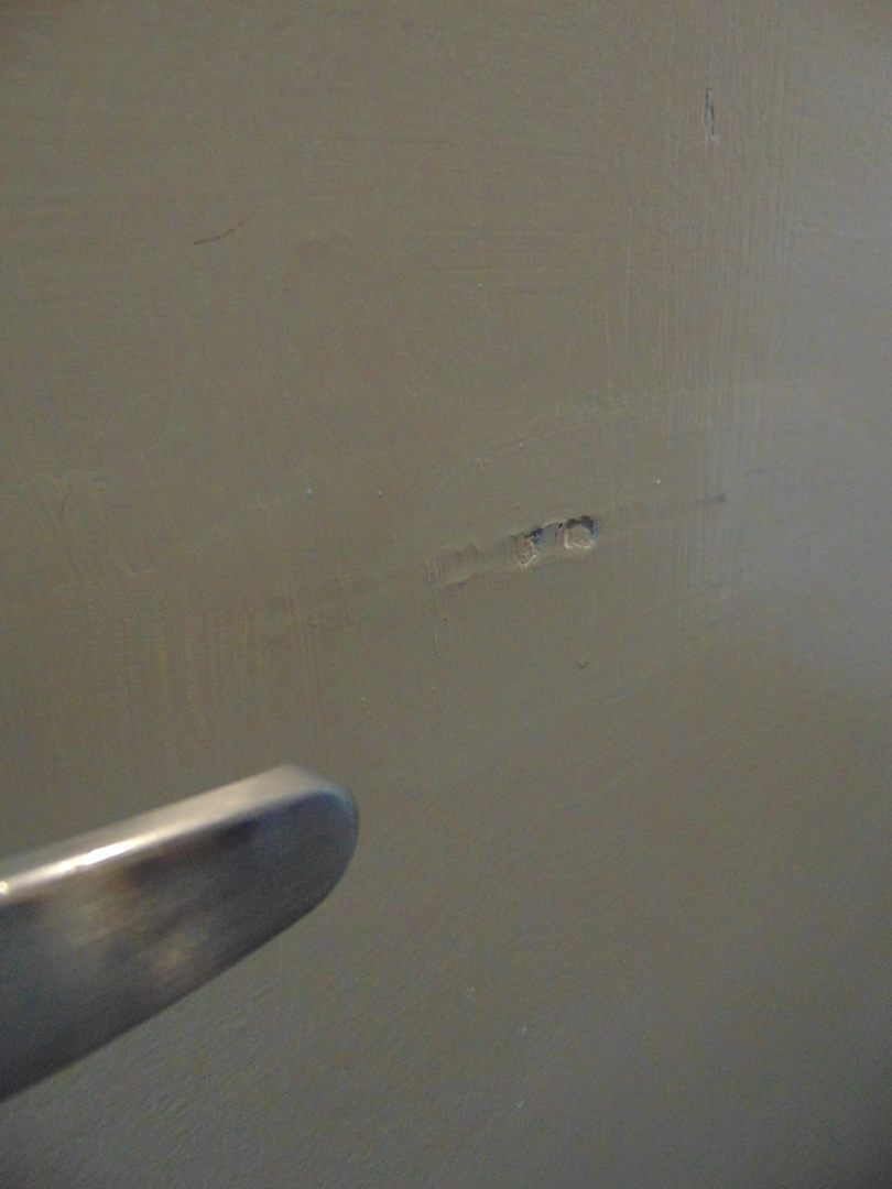 Auch die Tür zum Bad ist ziemlich vermackt.