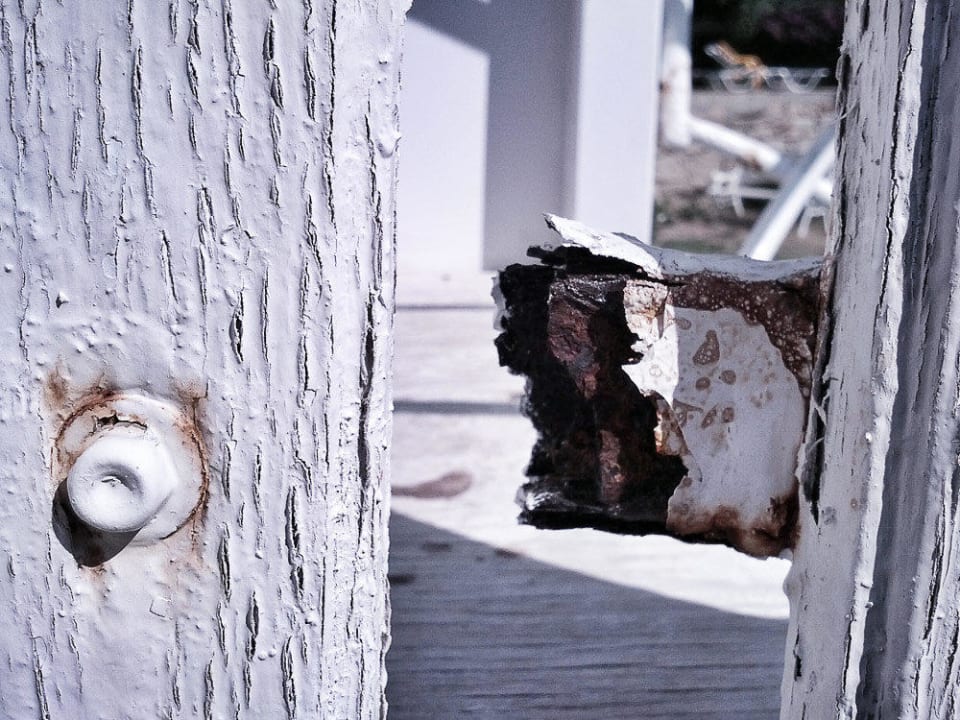 Verrostetes Klettergrüst - hohe Verletzungsgefahr.