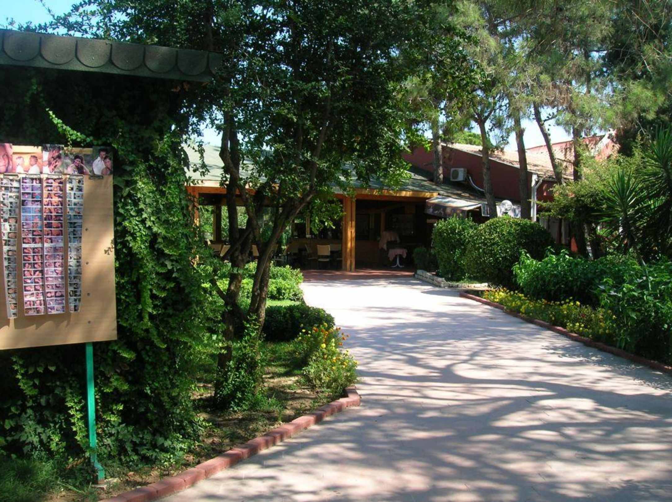 Wegweiser und Gartenanlage
