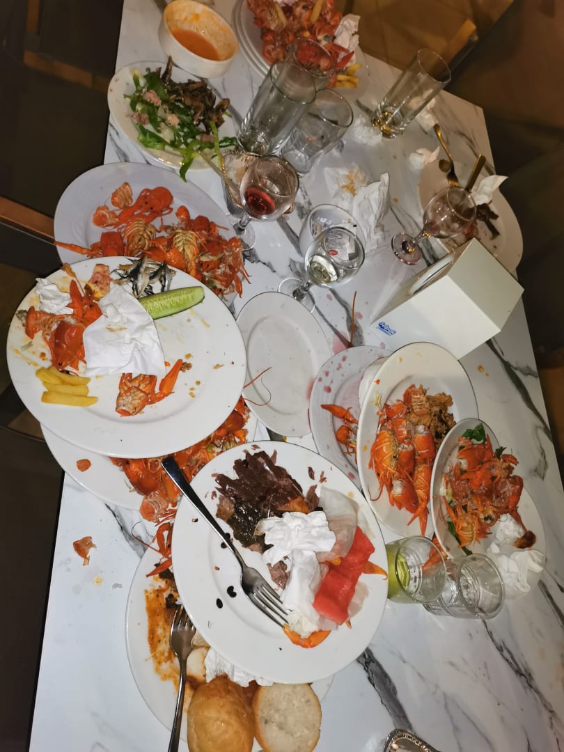 Schwer einen Platz zu finden, viele vollgemüllte Tische