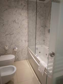 Bad leider mit Dusche in der Wanne. Wanne mit Whirlpoolfunktion